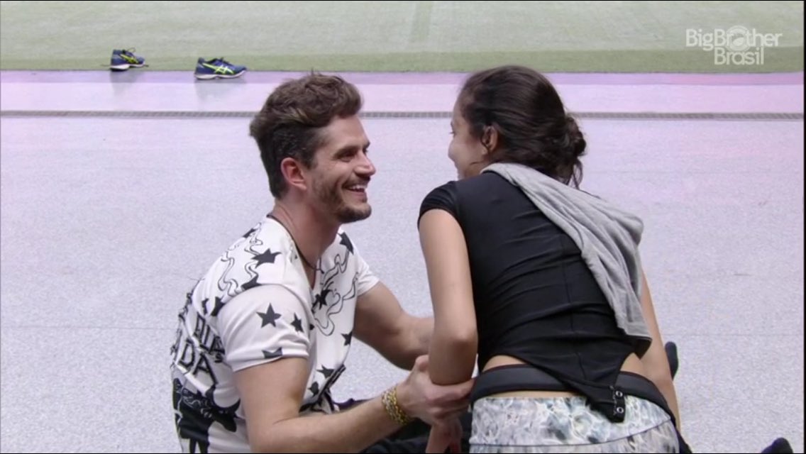 Quando Marinalva saiu, Marcos a parabenizou e disse que ela tem “fibra”. Logo em seguida Emilly apareceu e o casal se abraçou. Os dois se abraçaram deitados no chão. Emilly começou a chorar e Marcos: “Meu neném, minha coisa linda”. Emilly perguntou se ele gritou durante a prova e ele confirmou. “Toda vez que tu gritava eu ia mais forte”, admitiu Emilly. “Foi muito mais difícil sem você lá”.
