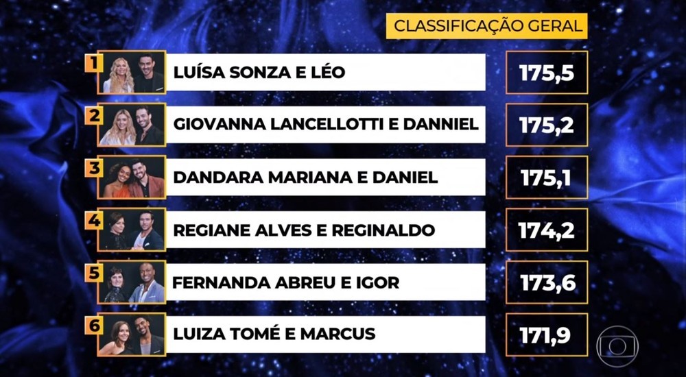 Luísa Sonza manteve a liderança das mulheres, seguida por Giovanna Lancellotti e Dandara Mariana, respectivamente. A diferença de pontuação entre elas é de décimos. Veja abaixo como ficou o ranking da terceira rodada das mulheres da Dança dos Famosos.