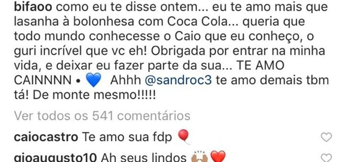 Veja abaixo interação antiga entre a participante de A Fazenda e Caio Castro no Instagram.