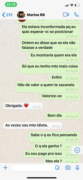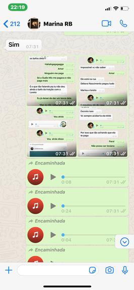 Em seguida, Leo Dias encaminha prints e áudios para Marina Ruy Barbosa, que diz: “Obrigada. Às vezes sou muito idiota”.
